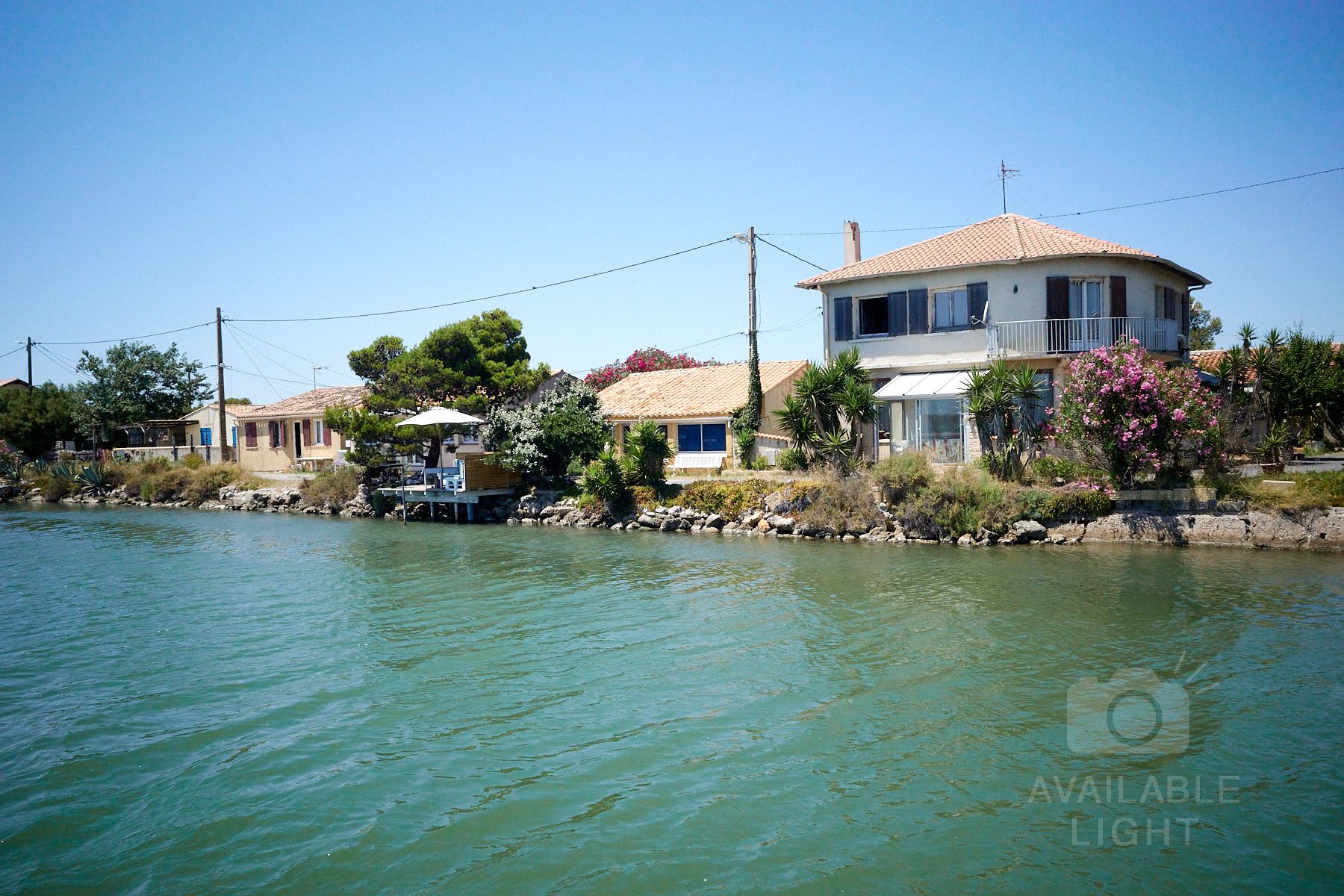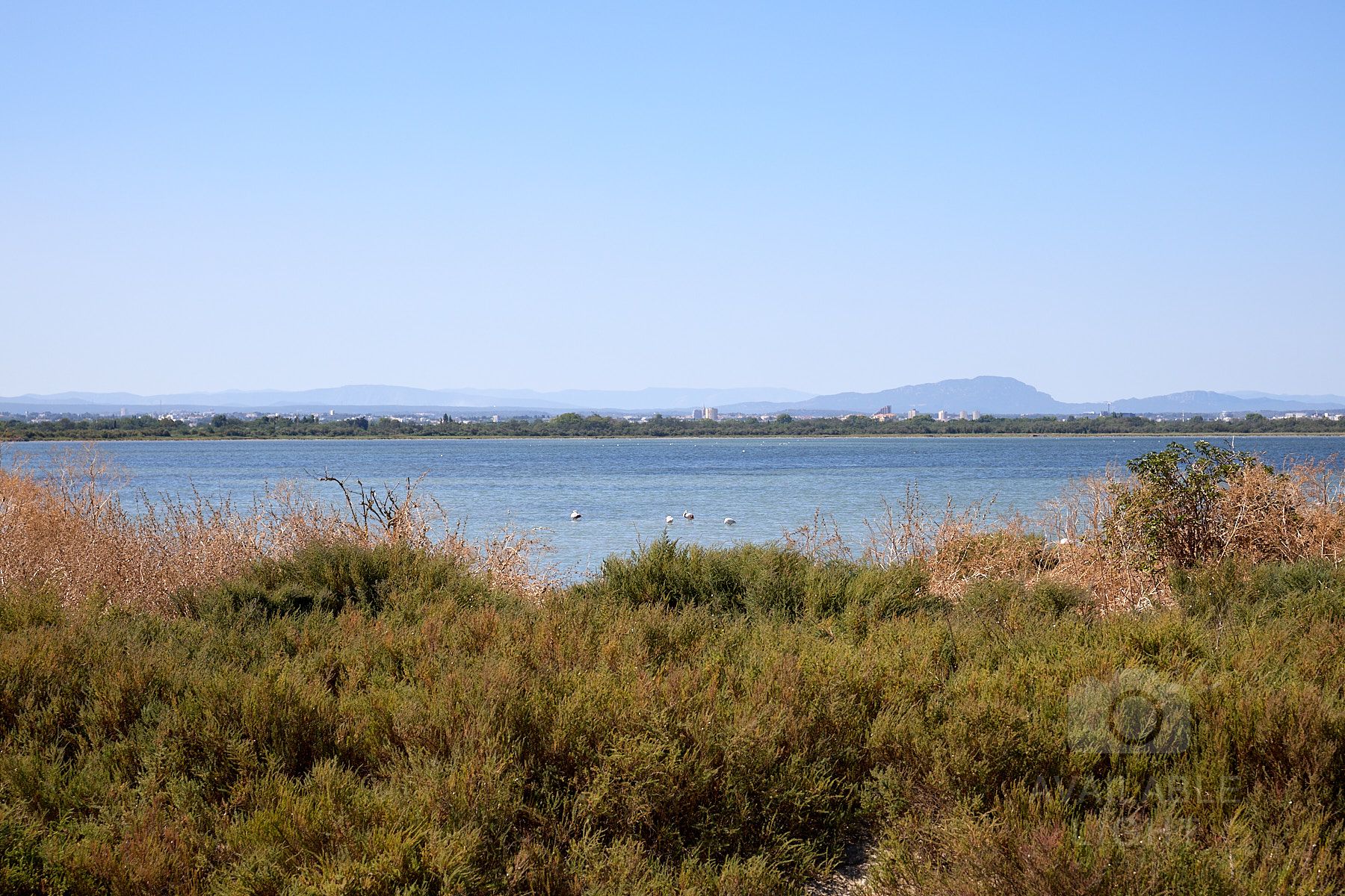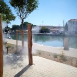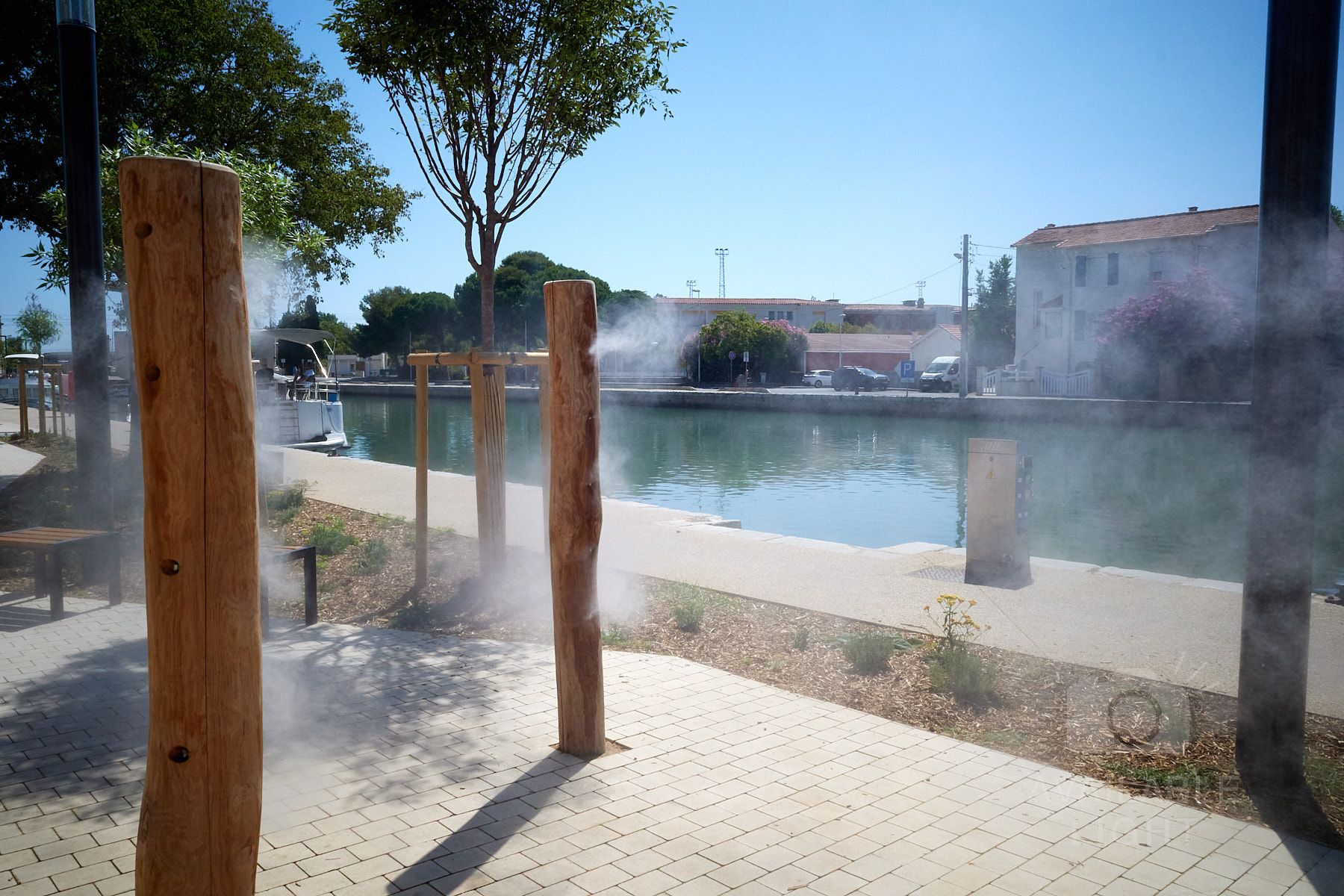 Frontignan ist eine wunderschöne Stadt. Zu sehen ist das öffentliche Versprühen von Wasser als sehr feinen Nebel, um sich mal so einfach abkühlen zu können.