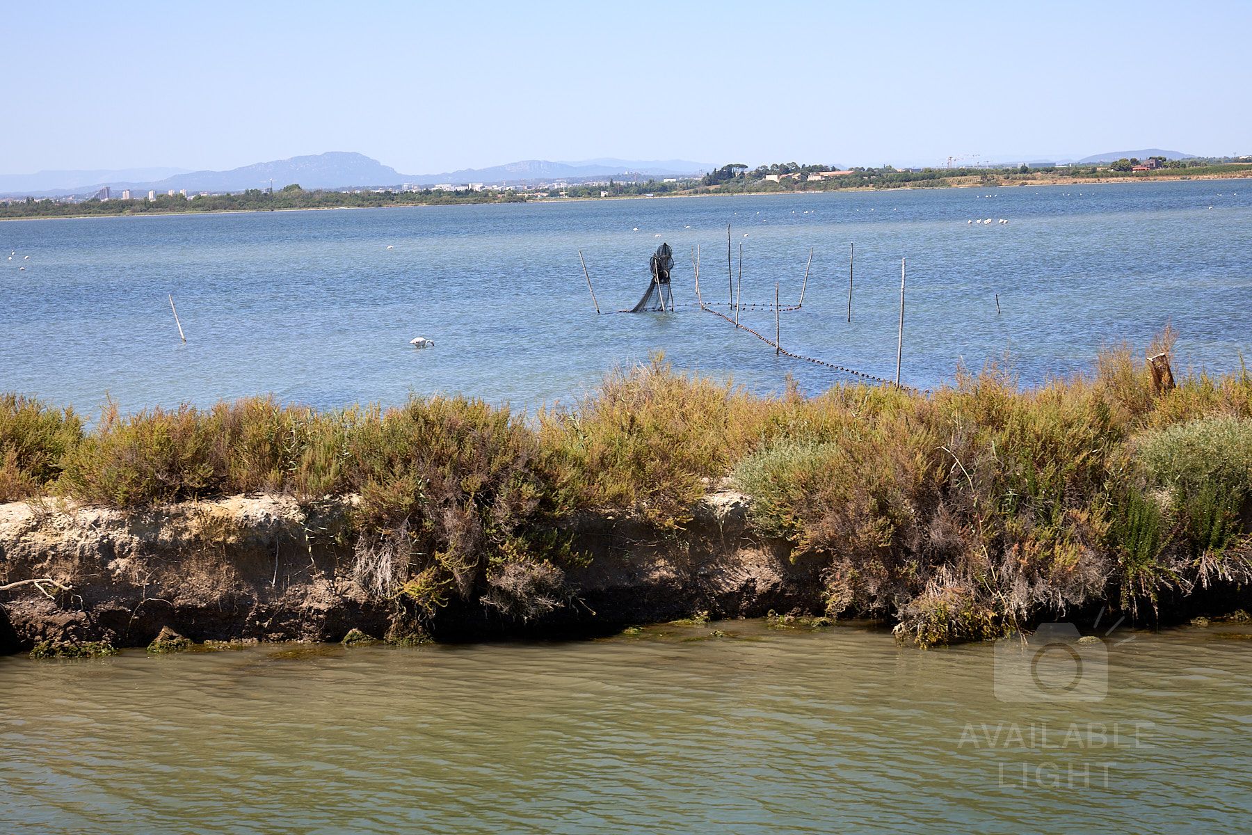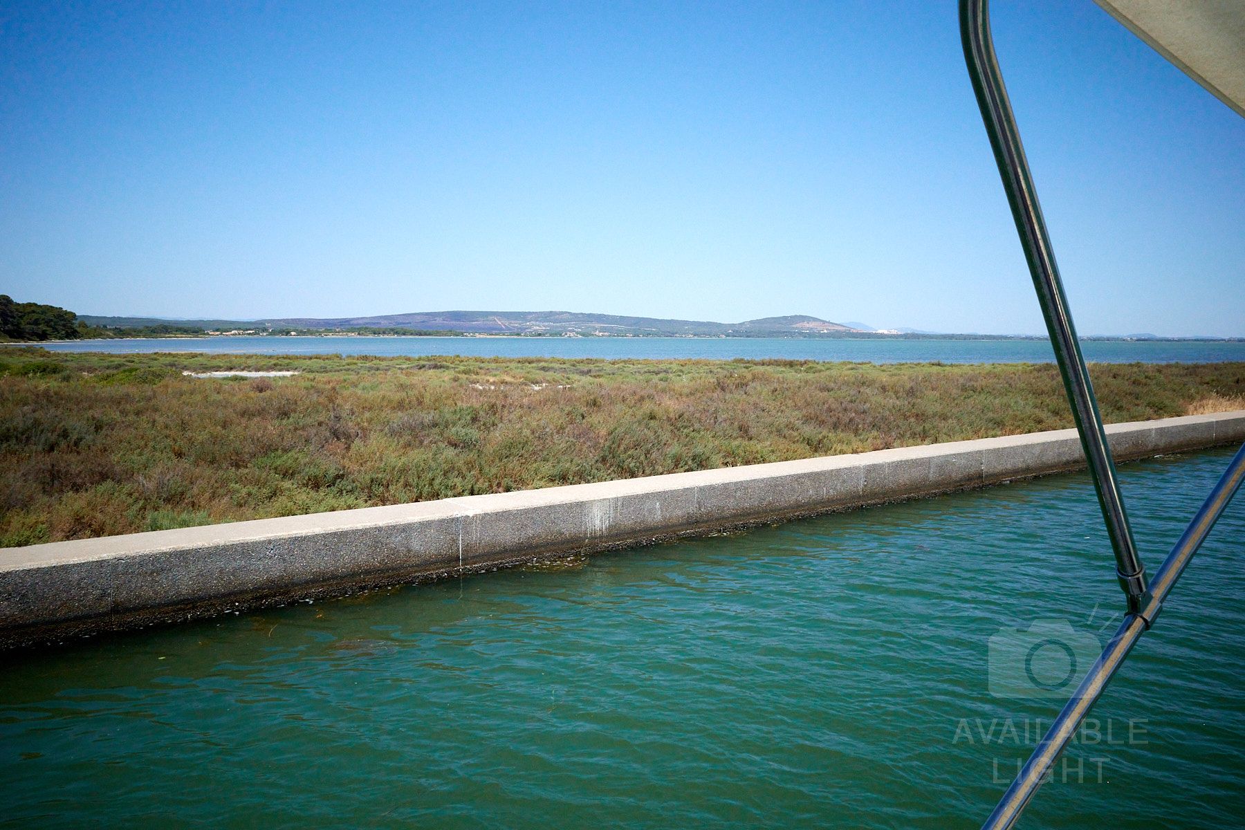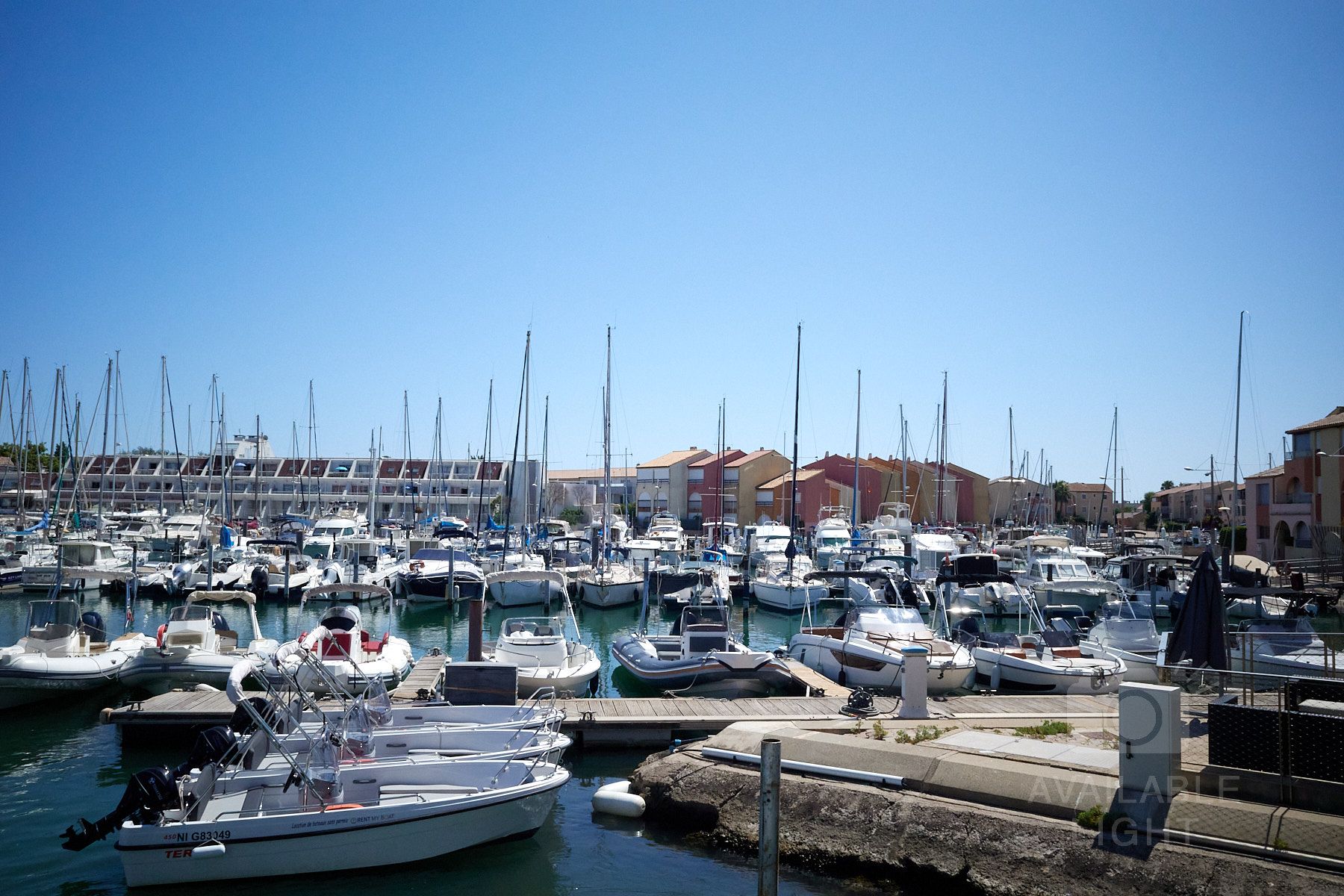 Frontignan ist eine wunderschöne Stadt. Zu sehen ist das öffentliche Versprühen von Wasser als sehr feinen Nebel, um sich mal so einfach abkühlen zu können.